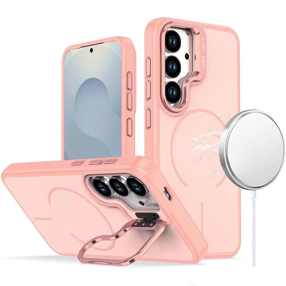 For Samsung s26 Magnetic Matte Camera Metallic Stand Hybrid Case – Pink
