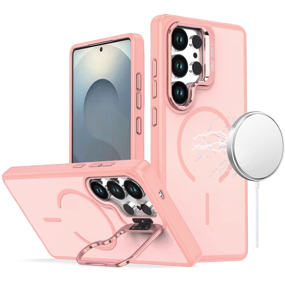 For Samsung s26 Ultra Magnetic Matte Camera Metallic Stand Hybrid Case – Pink