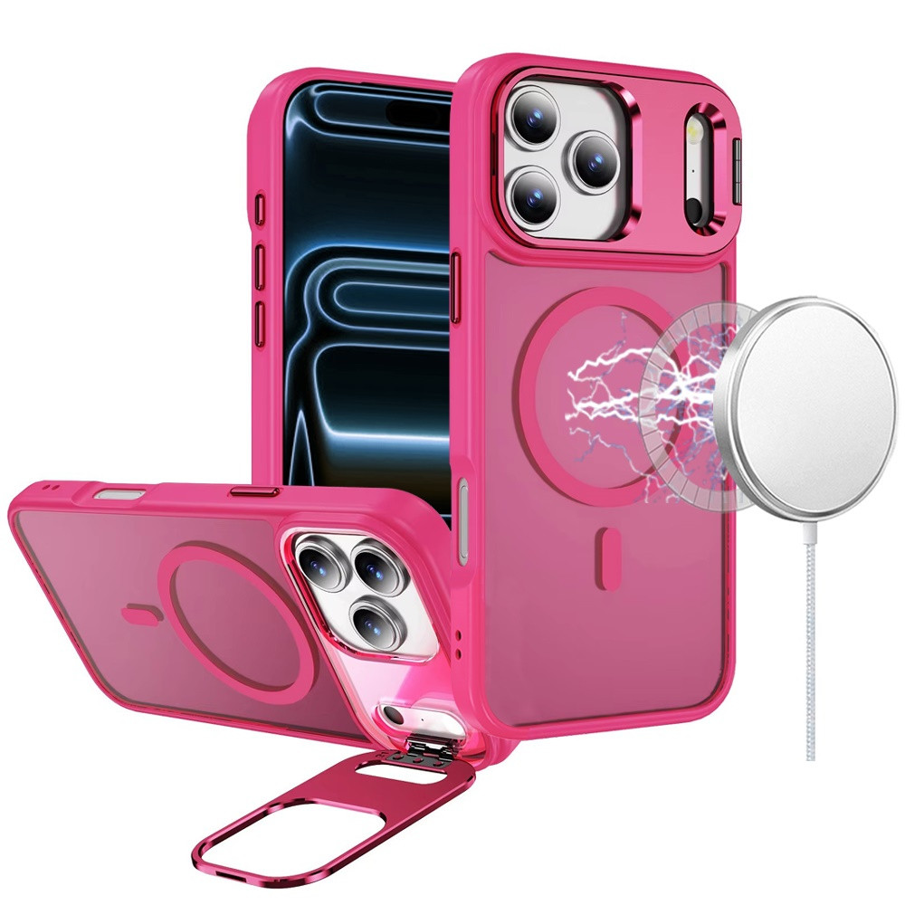 For iPhone 17 Pro Fearless Tough HQ Metallic Hybrid with Camera Ring Stand [Magnetic Circle] Case – Hot Pink