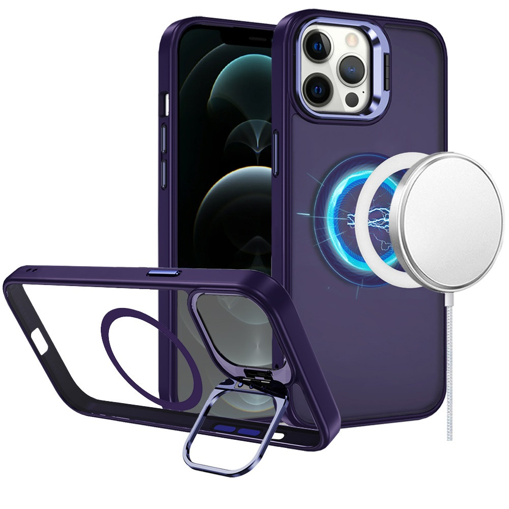 For iPhone 12 Pro Max 6.7 Fearless Tough HQ Metallic Hybrid with Camera Ring Stand [Magnetic Circle] Case – Dark Purple