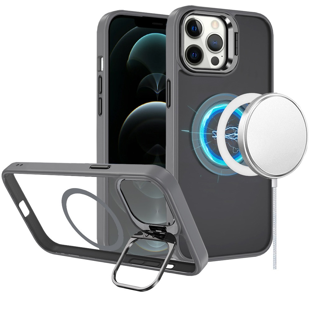 For iPhone 12 Pro Max 6.7 Fearless Tough HQ Metallic Hybrid with Camera Ring Stand [Magnetic Circle] Case – Gray