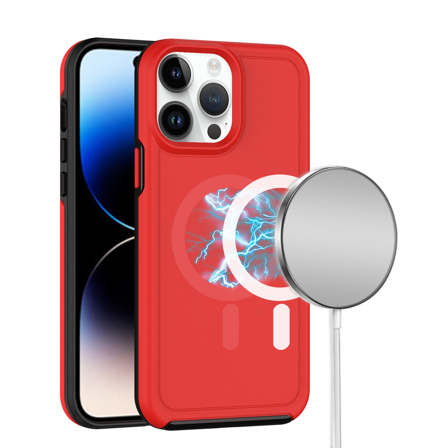For iPhone 12 Pro Max 6.7 Magnetic Ring Circle Guard Fused Ultimate Hybrid Case – Red