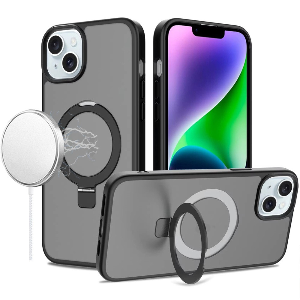 For iPhone 13/14 Magnetic Matching Ring Stand Full Rotation Matte Hybrid – Black