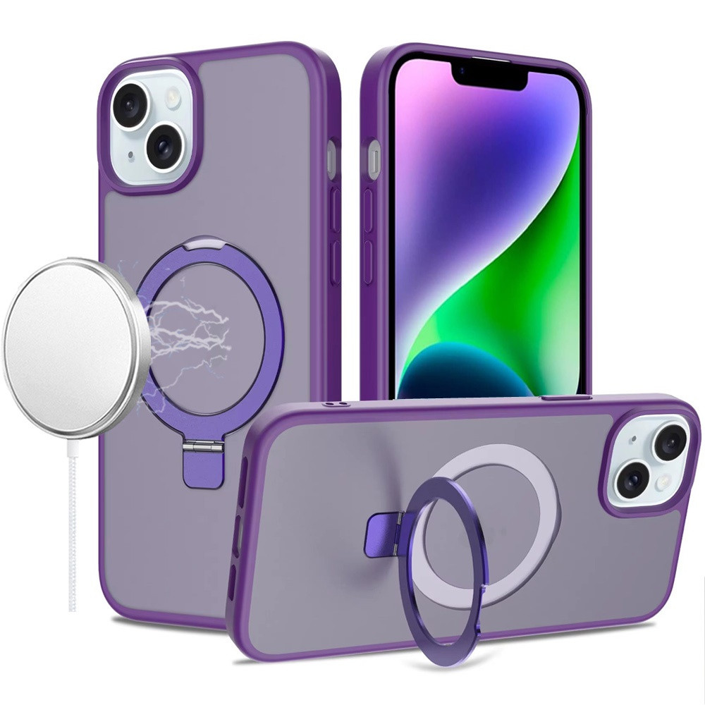 For iPhone 13/14 Magnetic Matching Ring Stand Full Rotation Matte Hybrid – Dark Purple