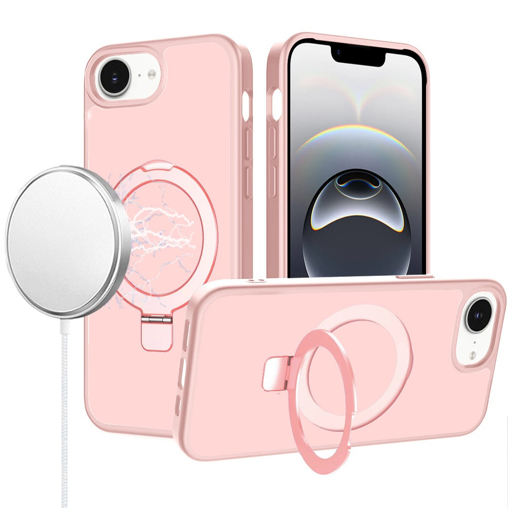For iPhone 16E (E edition) / SE4 (2025) Magnetic Matching Ring Stand Full Rotation Matte Hybrid – Light Pink