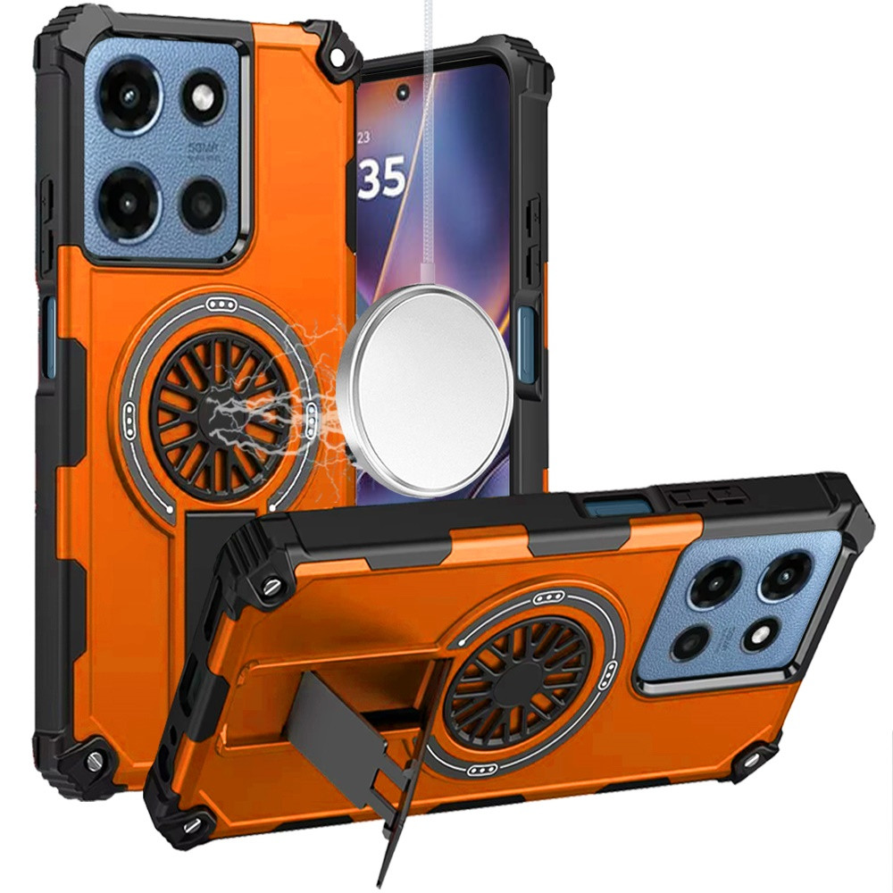 For Motorola Moto G 5G 2025 CD Texture Design Magnetic Car Mount Friendly HQ Hybrid – Cosmic Orange