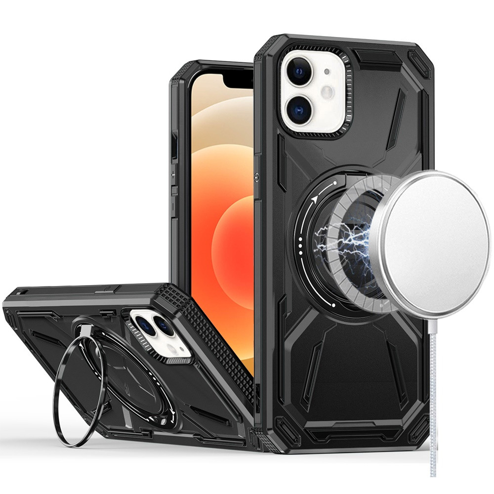 For iPhone 12 & iPhone 12 Pro Loop Hybrid with [Magnetic Ring Circle] 360 degrees Rotational Kickstand Case Cover – Black