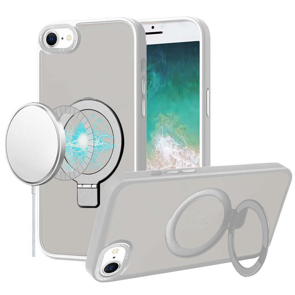 For iPhone 16E / SE4 Metal Chrome Kickstand [Magnetic Circle] Shockproof Matching Camera Hybrid – Clear