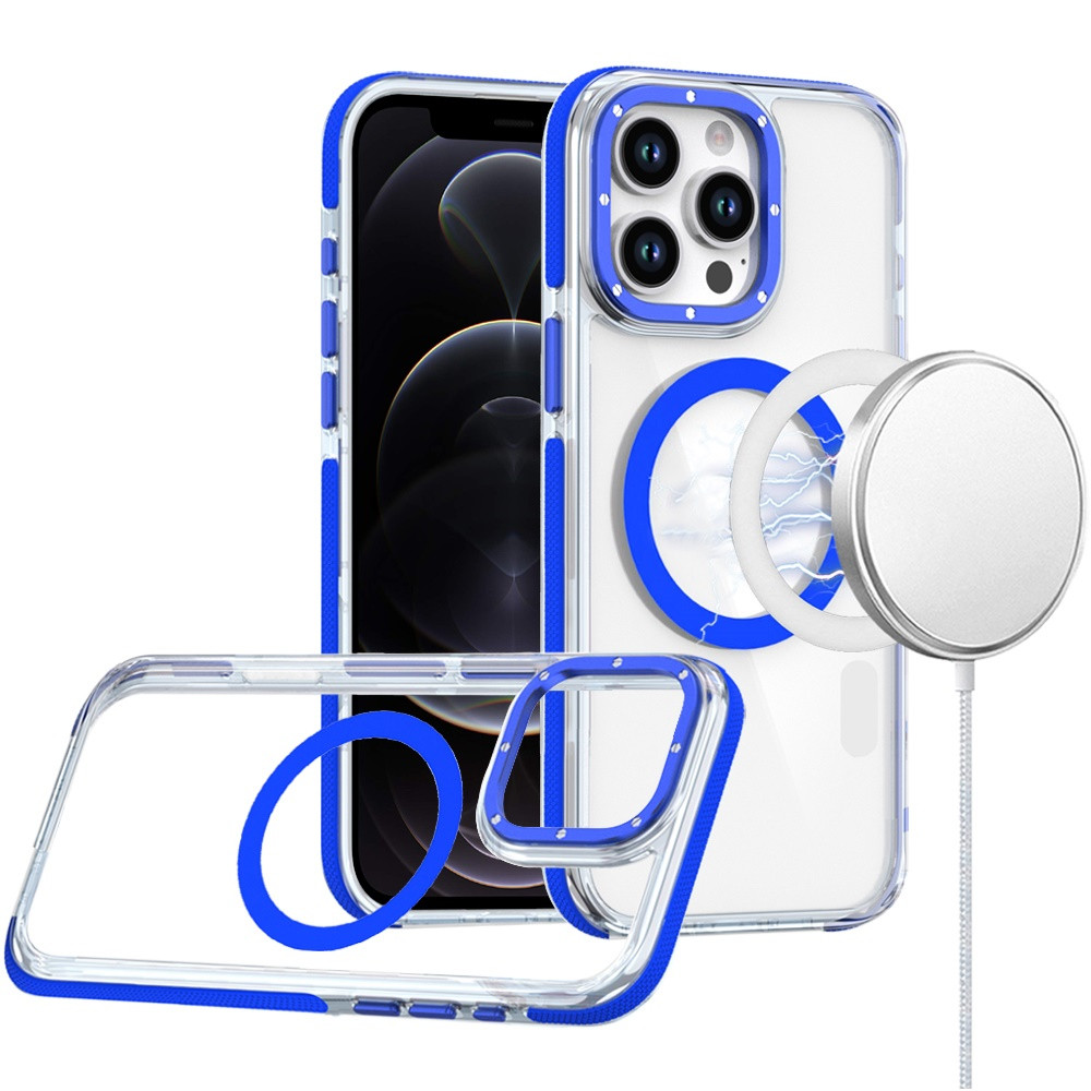 For iPhone 12 Pro Max 6.7 Matching Color Frame Strong Magnetic Ring Circle Transparent HQ Thick Hybrid – Blue