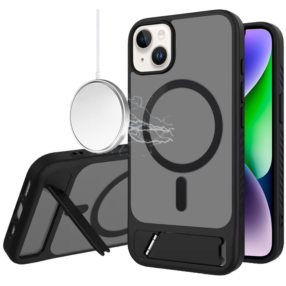 For iPhone 13/14 Matte Magnetic Hybrid with Metal Kickstand Case – Black
