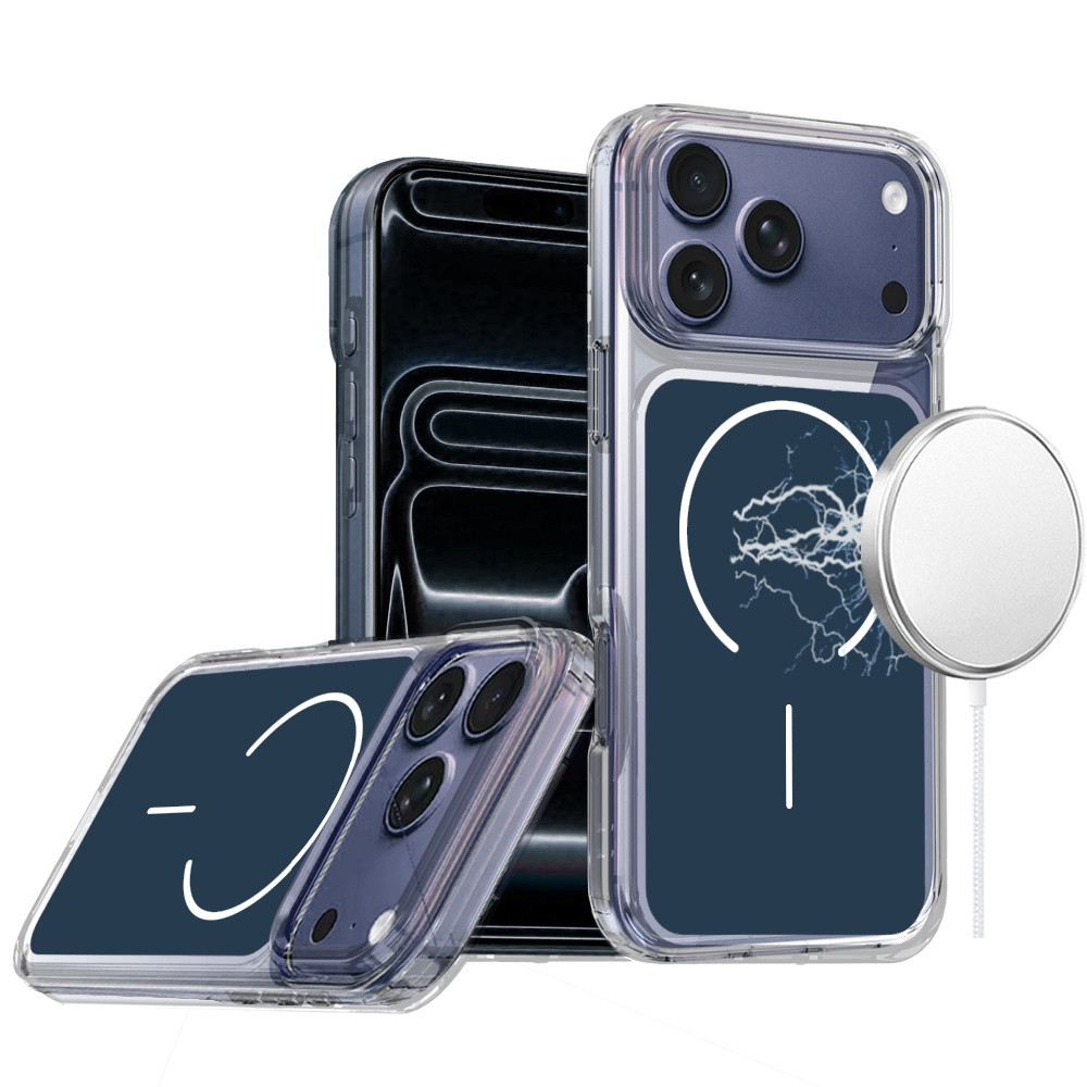 For iPhone 17 Pro Metallic Transparent Magnetic Hybrid Case – Navy Blue