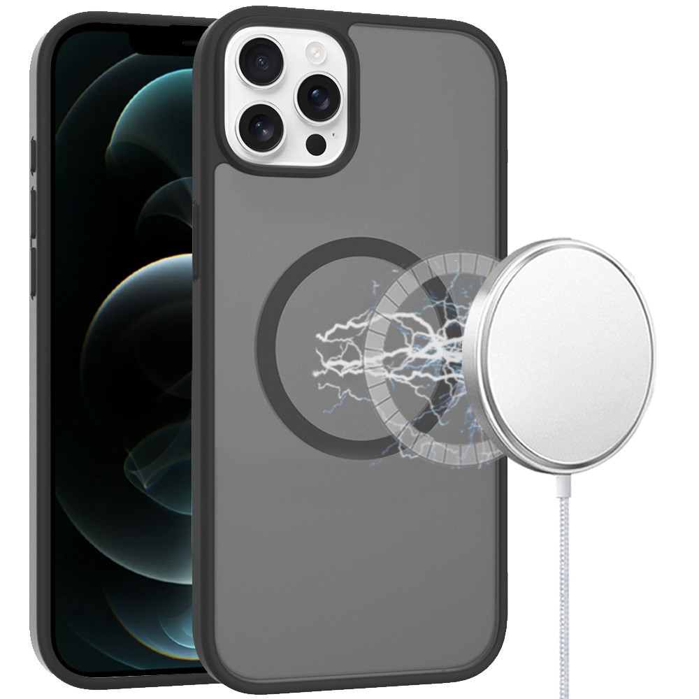 For iPhone 12 Pro Max 6.7 [Magnetic Circle] Smooth Safe Matte Feel Hybrid Case – Black