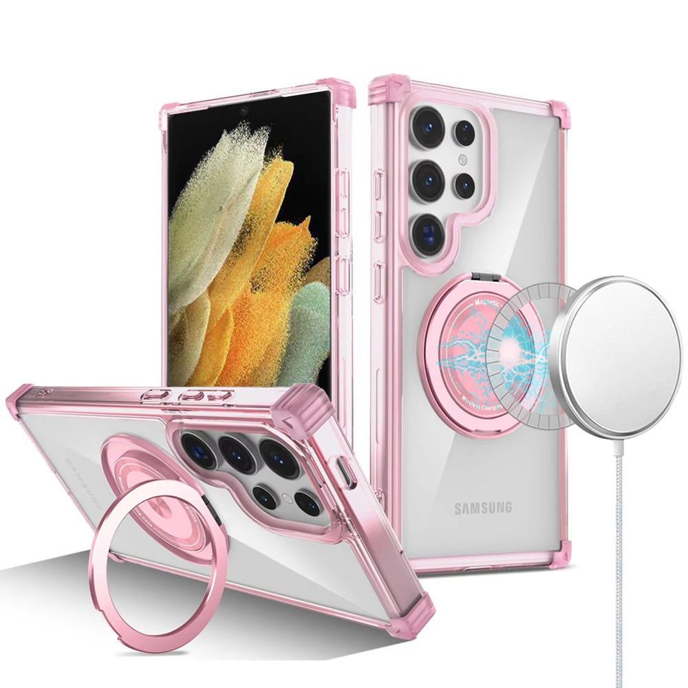 For Samsung S21 Ultra/S30 Ultra 7.1inch Shield Magnetic Ring Transparent HQ 360 Degree Rotational Shockproof – Pink