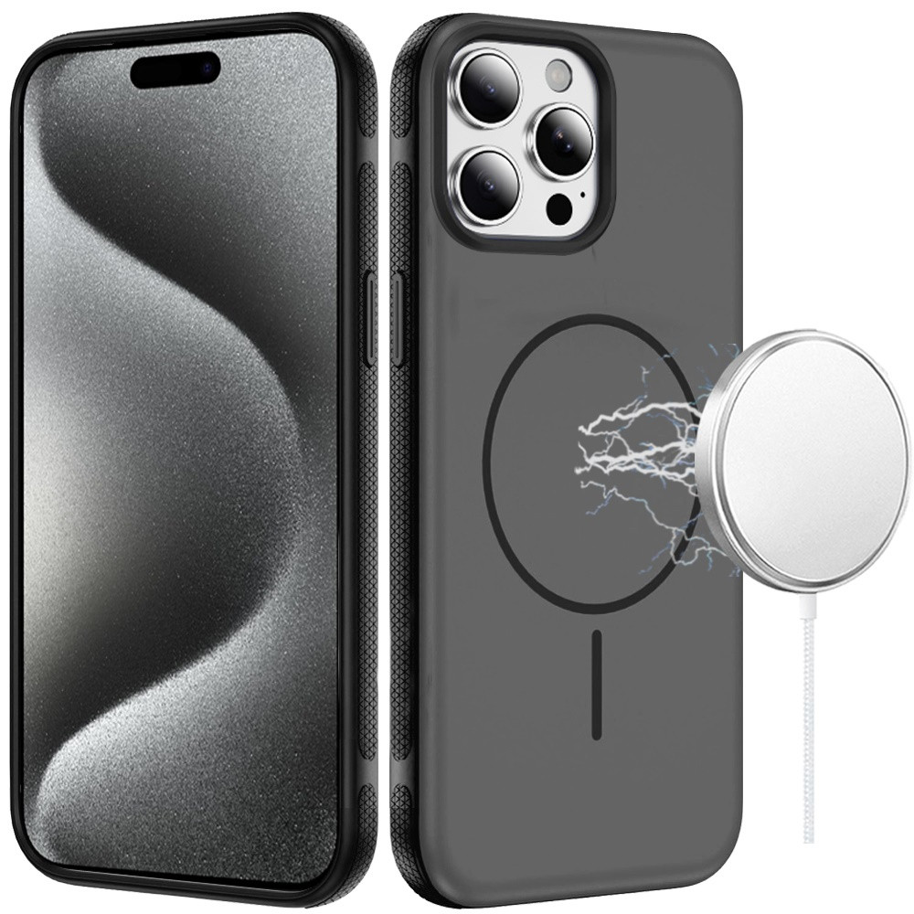 For iP15 Pro Max Premium Edged Core Matte Thick Super Magnetic Hybrid Case – Black