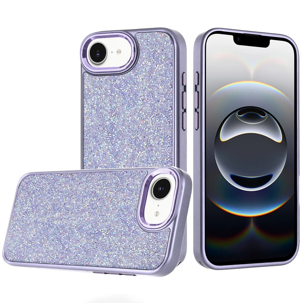 For iPhone 16E (E edition) / SE4 (2025) Crystal Glass Diamond with Metallic Buttons and Edges Hybrid Case – Dark Purple