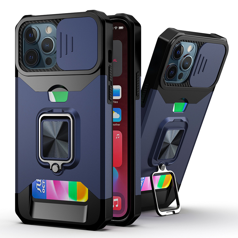 For iPhone SE 3 (2022) SE/8/7 Multi-Functional Card Magnetic Ring Stand Hybrid Camera Case Cover – Blue