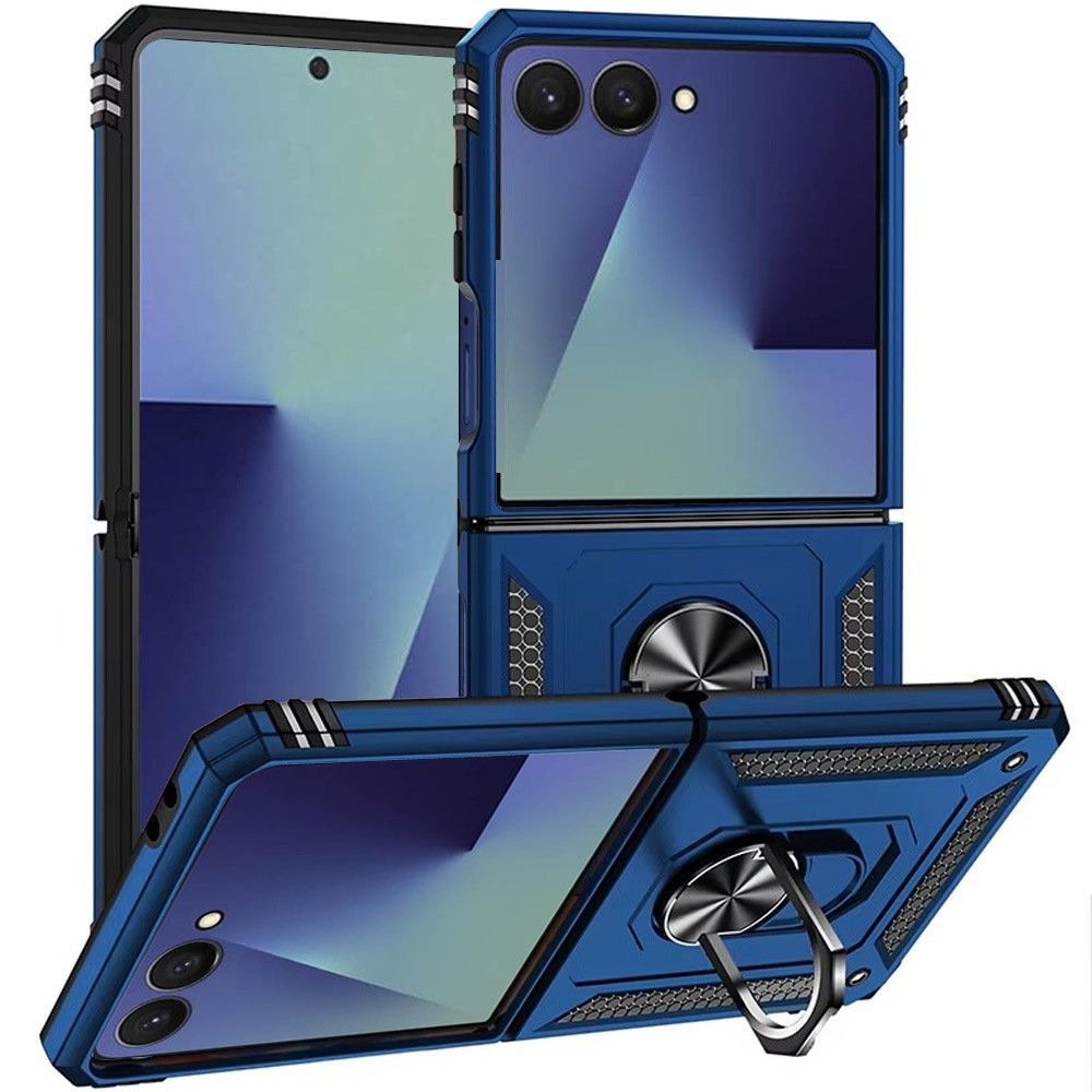 For Samsung Z Flip 7 Magnetic Ring Kickstand Hybrid Case Cover – Blue