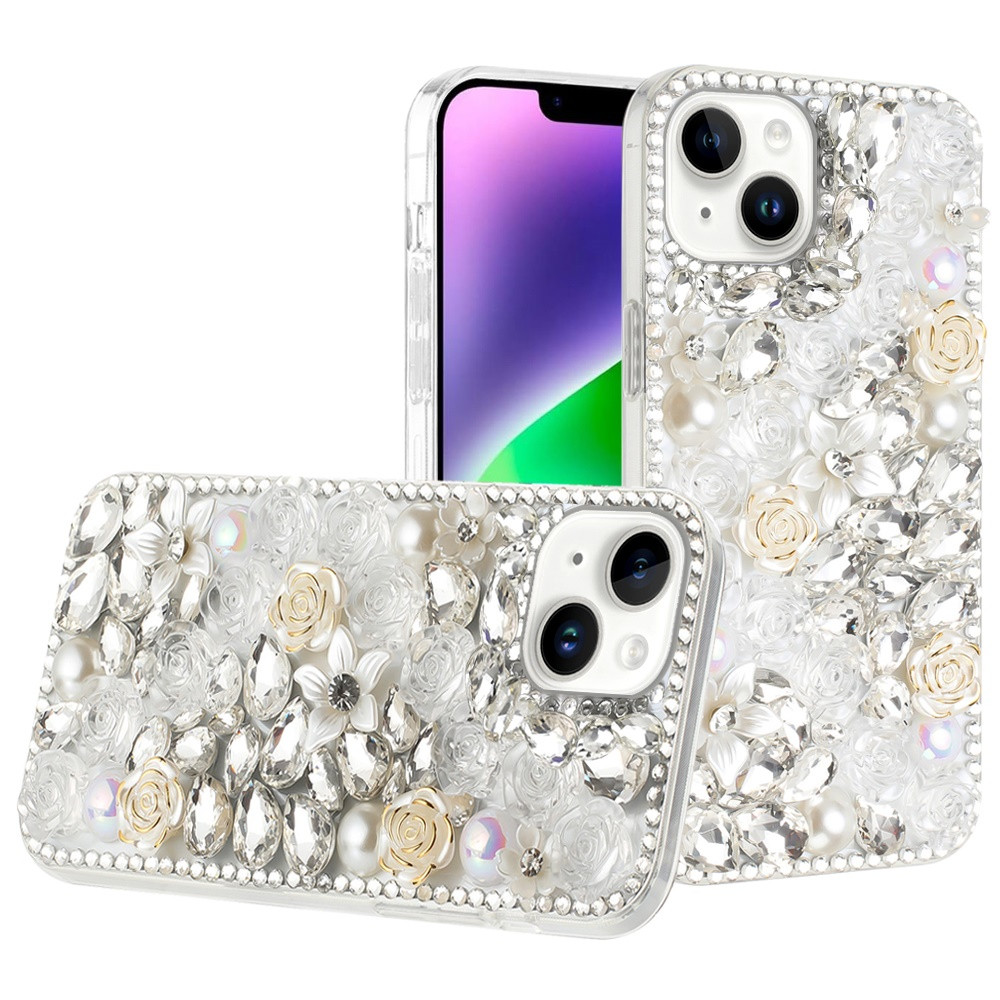 For iPhone 14 6.1″” Rose Flower Full Diamond Bling Stones – Clear