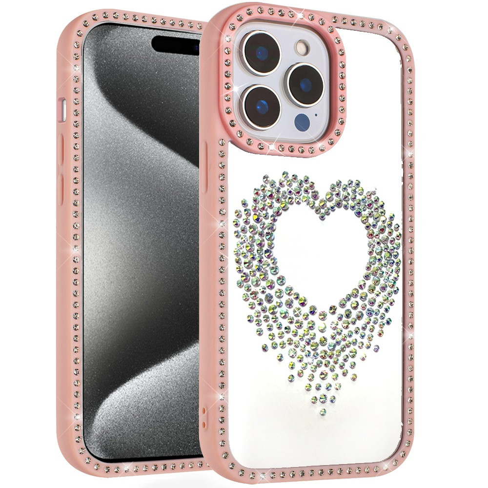 For iP15 Pro Max Beautiful ANGEL Hearts Glitter Shimmer Diamond Edged Hybrid Case – Pink