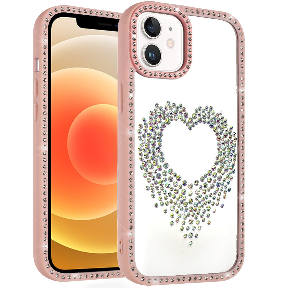 For iPhone 12 & iPhone 12 Pro Beautiful ANGEL Hearts Glitter Shimmer Diamond Edged Hybrid Case – Pink