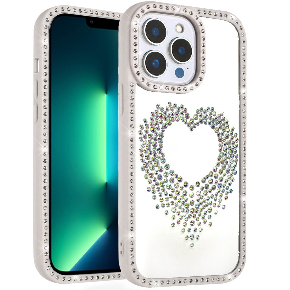 For iPhone 13 Pro Max Beautiful ANGEL Hearts Glitter Shimmer Diamond Edged Hybrid Case – Beige