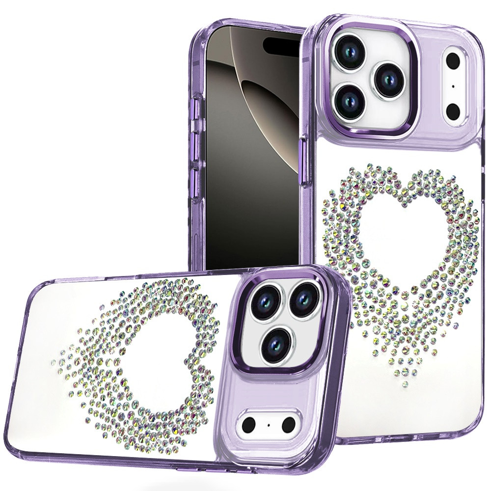 For iPhone 17 Pro Angel Hearts Bling Shimmer Colorful Glitter Chrome Edged Hybrid Case – Purple