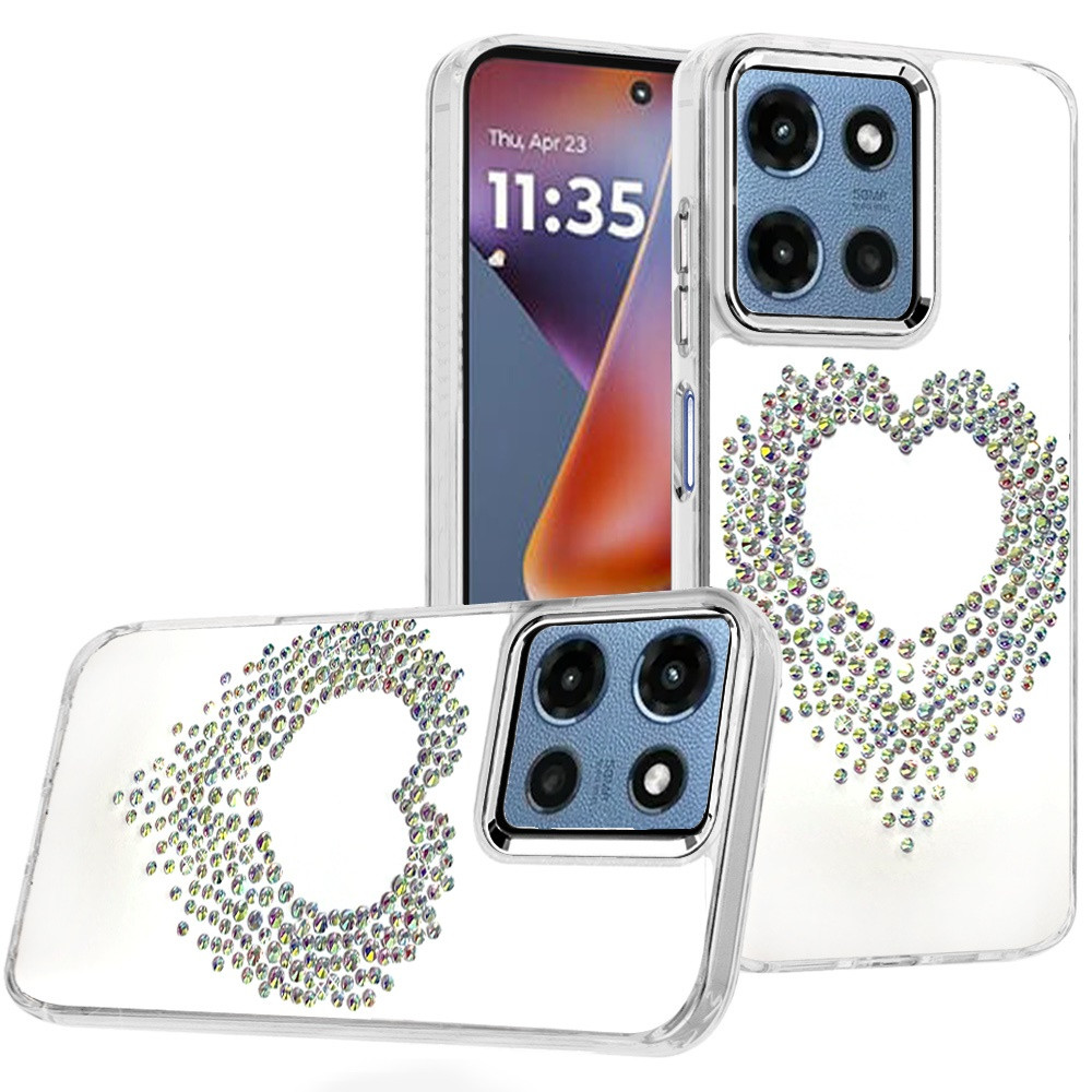 For Moto G 5G 2025/2026 – G Play 2026 – Angel Hearts Bling Shimmer Colorful Glitter Chrome Edged Hybrid Case – Silver