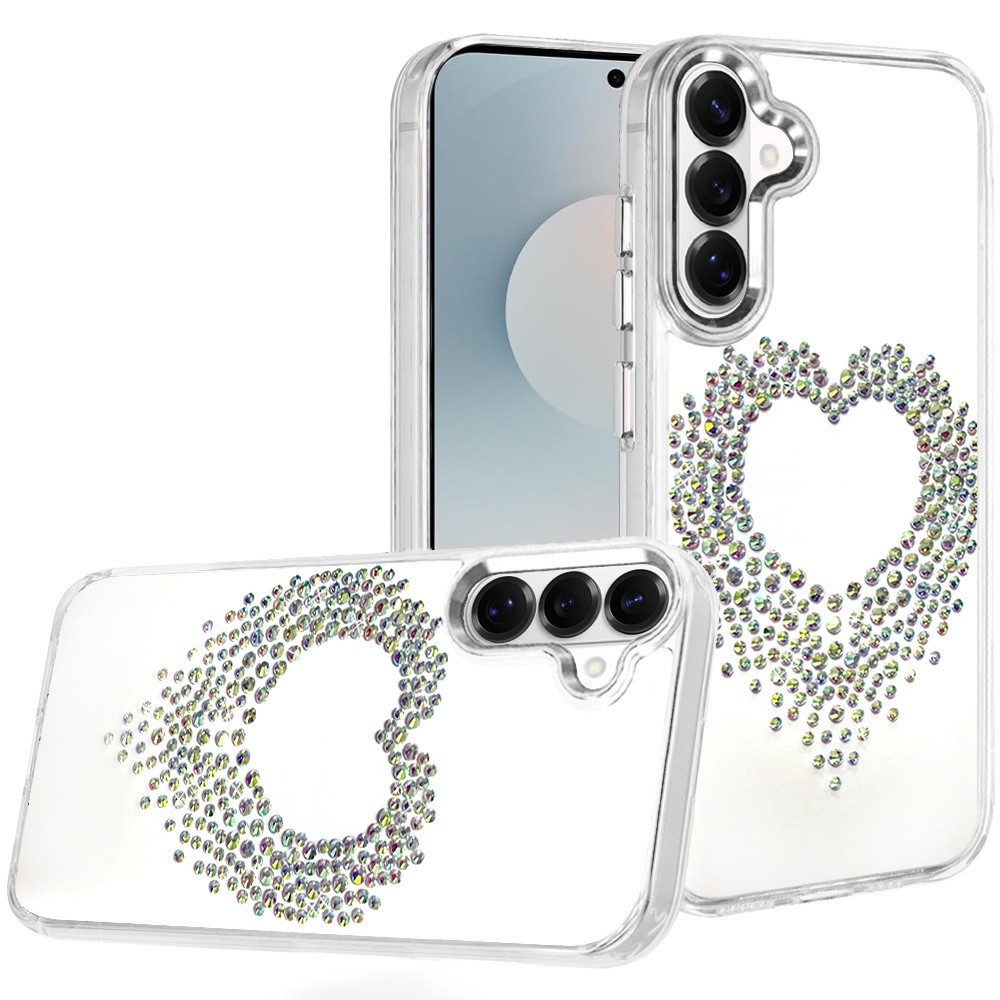 For Samsung s26 Plus Angel Hearts Bling Shimmer Colorful Glitter Chrome Plusd Hybrid Case – Silver