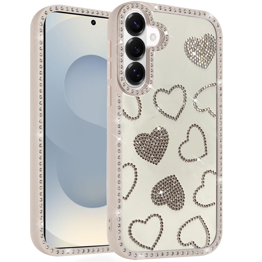 For Samsung s26 Spread Love Glitter Shimmer Diamond Edged Hybrid Case – Beige
