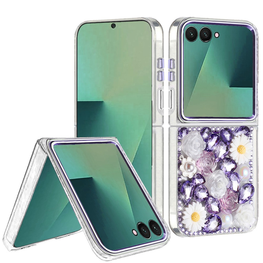 For Samsung Z Flip 7 Spectacular Full Bling Stones Glitter HQ Hybrid Floral Series – Purple