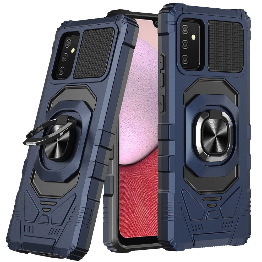 For Samsung A14 5G Robotic Hybrid with Magnetic Ring Stand Case Cover – Dark Blue