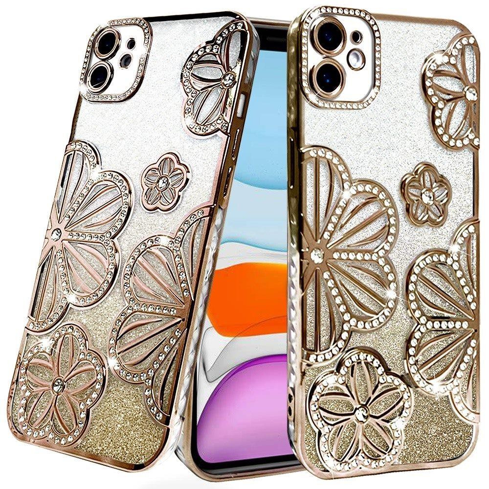 For iPhone 11 (XI6.1) Shimmer Glitter Floral Design Thick TPU Case Cover – Gold