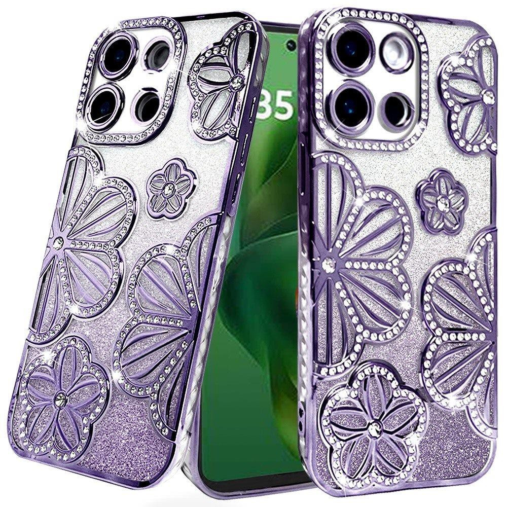 For Moto G Power 2026/2025 Shimmer Glitter Floral Design Thick TPU Case Cover – Purple