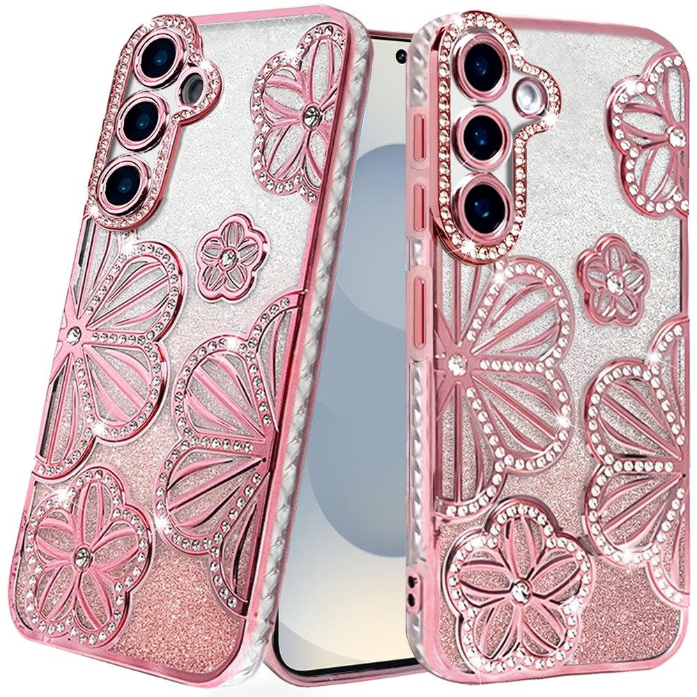 For Samsung s26 Shimmer Glitter Floral Design Thick TPU Case Cover – Rose Gold
