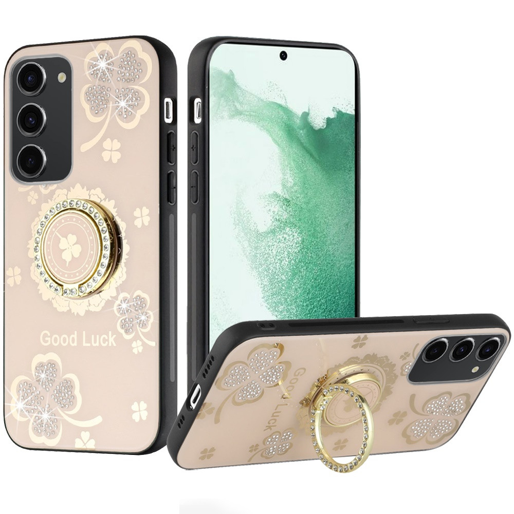 For Samsung Galaxy S22 Plus SPLENDID Diamond Glitter Ornaments Engraving Case Cover – Good Luck Floral Gold