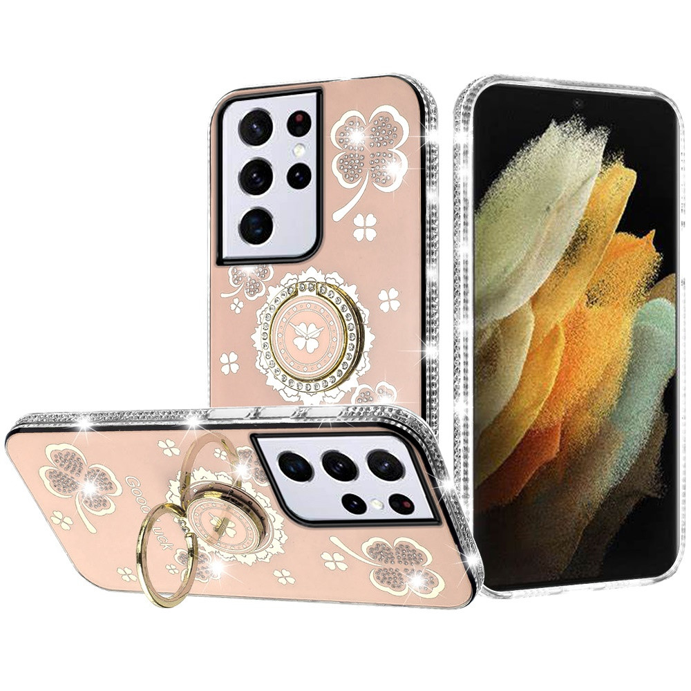 For Samsung S21 Ultra/S30 Ultra 7.1inch Splendid Glitter with Diamonds All Around Edges Ring Stand – Gold