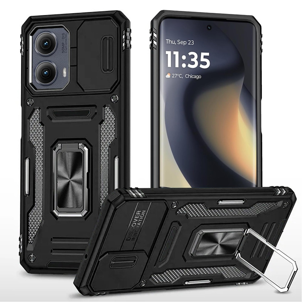 For Motorola Moto Edge 5G 2024 Utter Tough Metal Ring Movable Camera Window Hybrid – Black