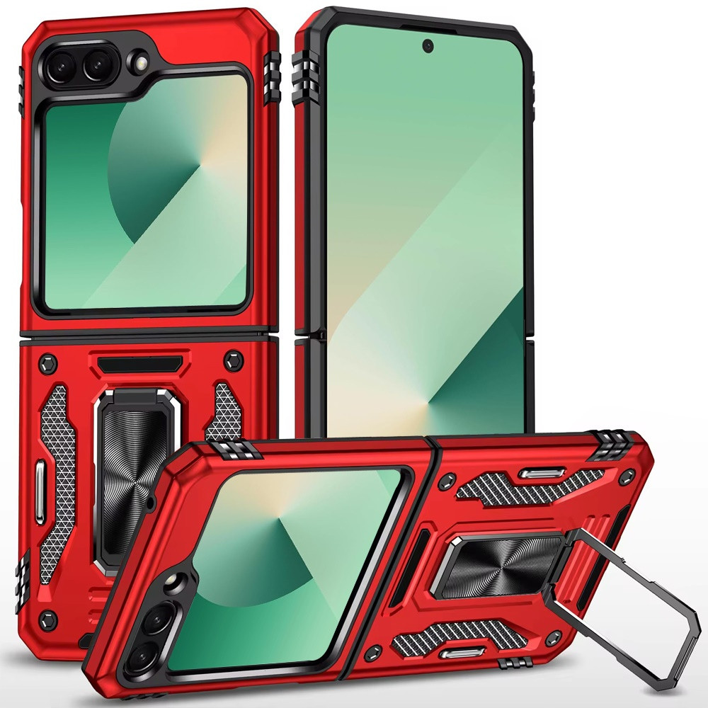 For Samsung Z Flip 7 Utter Tough Metal Ring Movable Camera Window Hybrid Case Cover – Red