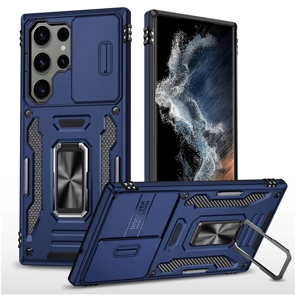 For Samsung Galaxy S22 Ultra Utter Tough Metal Ring Movable Camera Window Hybrid – Navy blue