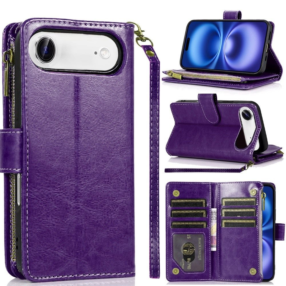 For iPhone 17 Air Luxury Wallet Card ID Zipper Money Holder Case Cover – Dark Purple