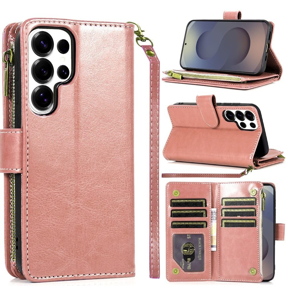 For Samsung s26 Ultra Luxury Wallet Card ID Zipper Money Holder Case Cover – Rose Gold