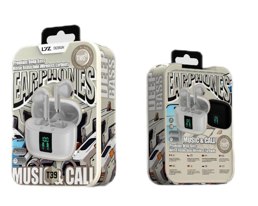 The T-39 TWS headset is light and comfortable, and it fits snugly in your ears for hours of wear. With a long battery life and a portable charging case, you can listen all day without worrying about running out of power. This headset can keep up with your busy schedule, from your morning podcast to your evening playlist.